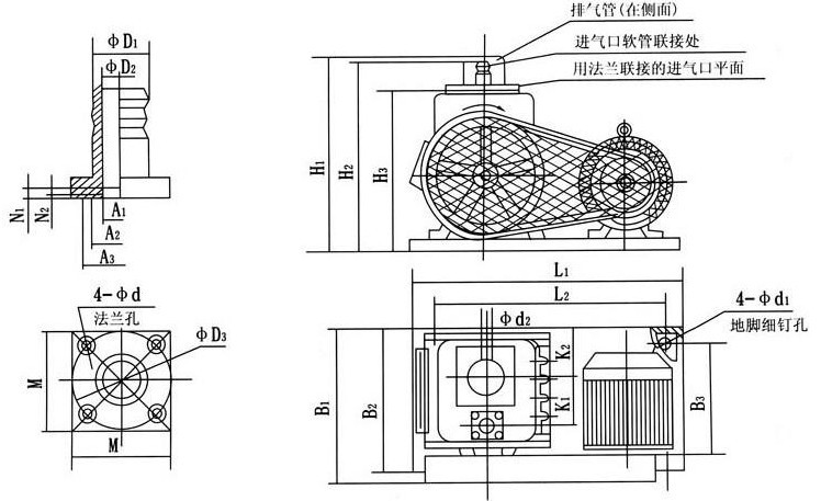 注:安裝時應小心,防止鐵屑、污物、塵埃等落入旋片真空泵內(nèi).