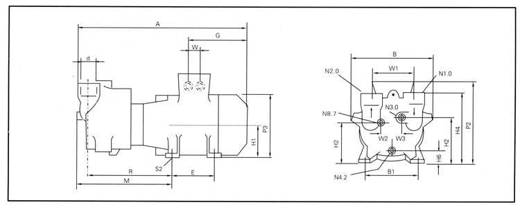 型號 | 曲線編號 | A | B | B1 | E | H1 | H2 | H3 | H4 | H6 | M | P2 | P3 |