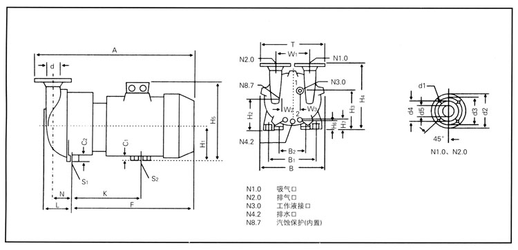 SKA系列真空泵適于抽除氣體和水蒸汽,吸氣壓力達到33mbar絕壓(97%真空度),當真空泵在吸氣壓力低于80mbar的狀態(tài)下長期工作時,應聯(lián)接氣蝕保護管以對泵進行保護,如配大氣噴射器,吸氣壓力可達10mbar,噴射器可直接安裝在真空泵上,作為壓縮機用時,其壓力最大至0.26MPa(絕壓)。