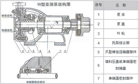4、W型旋渦泵的密封形式有軟填料密封和單端面機(jī)械密封。除WB和WM型泵用單端面機(jī)械密封外泵出廠時(shí)一律裝軟填料密封。如用戶需要其它型式的軸封要在訂貨時(shí)說(shuō)明。