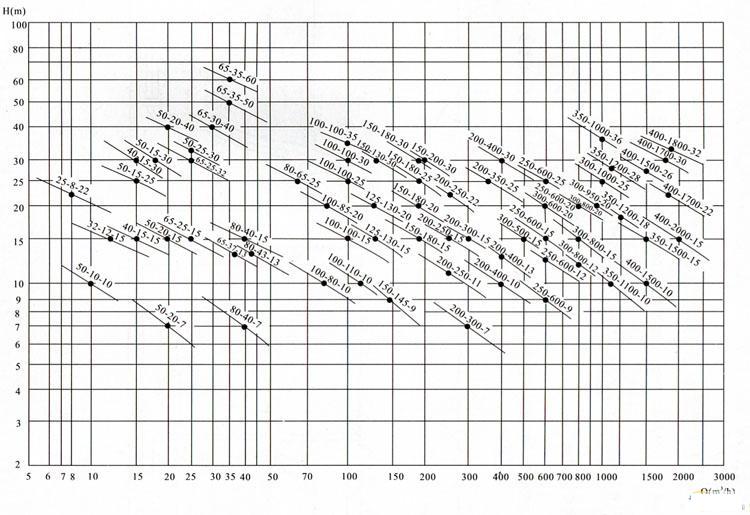 型號(hào) | 口徑 mm | 流量 m3/h | 揚(yáng)程 m | 功率 KW | 轉(zhuǎn)速 r/min | 效率 % |