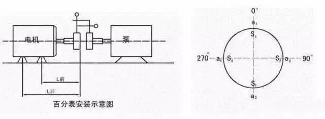 把百分表架到泵端,將百分表對零,將對輪旋轉(zhuǎn)一圈,每90度得到一個數(shù)值,最后百分表轉(zhuǎn)回其始位時必須回零,左右讀數(shù)相加應(yīng)該等于上下數(shù)值相加之和。然后根據(jù)讀數(shù)分析出兩軸的相對空間位置狀況,根據(jù)偏差值作出適當(dāng)調(diào)整。首先調(diào)整聯(lián)軸器的左右偏差到允許值,然后調(diào)整高低至標(biāo)準(zhǔn)之內(nèi)。