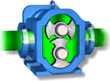 雙螺桿泵與齒輪泵十分相似,一個(gè)螺桿轉(zhuǎn)動(dòng),帶動(dòng)另一個(gè)螺桿,液體被攔截在嚙合室內(nèi),沿桿軸方向推進(jìn),然后被擠向中央排出